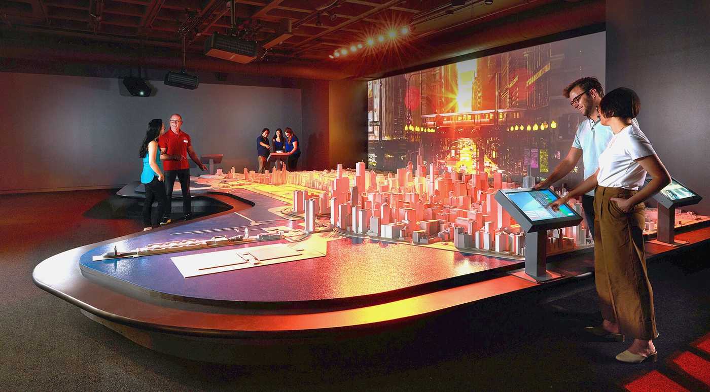 Interact with the Chicago City Model Experience, an incredibly detailed, three-dimensional cityscape activated by special effects and a short film